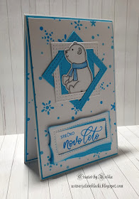 Pri prvi voščilnici sem uporabila smreke, dodala pa sem še šabloni srnic, ki jih je Tina prav tako naredila za Rayher in napis Vesele praznike.